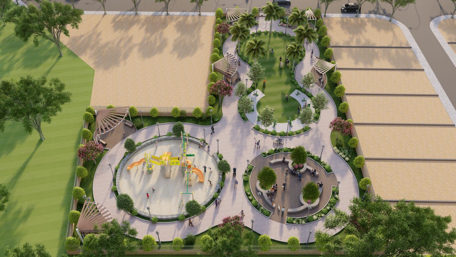 Landscaped Gardens: Beautifully landscaped gardens provide green spaces for leisure and relaxation.